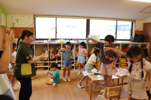 2025年9月19日 今日の子どもたち♪ 今日はホールや園庭でかけっこをする姿が多くありました☆先生まてまて~!年少さんもかけっこ!お兄さんお姉さん達かっこいいね!いっぱい遊んでくれてありがとう!お部屋では製作♪くるくるちょうどんなふうに落ちるかな?