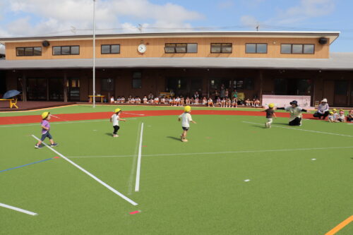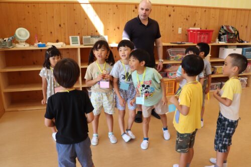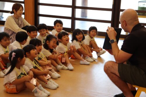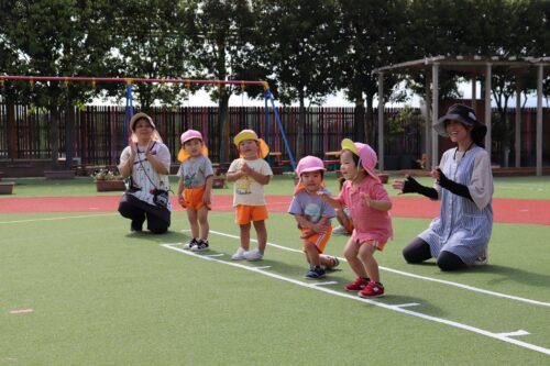 2025年10月1日 今日の子どもたち♪ 今日は英語あそびがありました♪How old are you?お友だちに質問です。FRYDAYを探すよ!体温計のシールはどこに貼ればいいかな?大きなお返事できました♡ひよこ組さんもかけっこ!お兄さんお姉さん達が応援していました♪