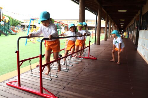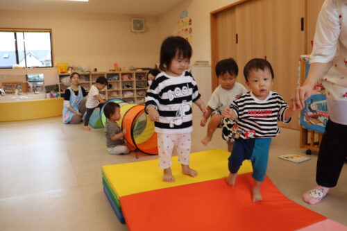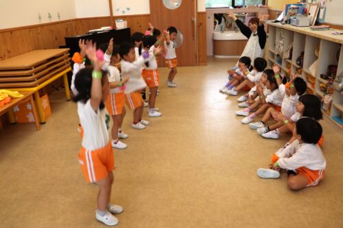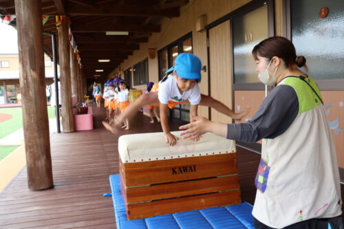 2025年10月15日 今日の子どもたち♪ 今日は英語あそびがありました♪お名前英語で言えるかな?皆で橋渡り!ダンスの見せ合いっこをしたよ♪跳び箱上手になってきたね!運動会まであと少しだね。うさぎ組さんはクレヨンで製作をしたよ♪ひよこ組さんはサーキット遊びを楽しみました☆