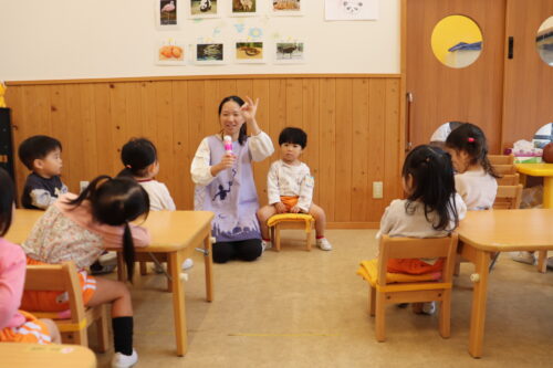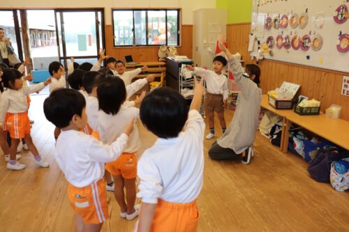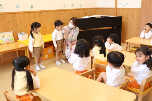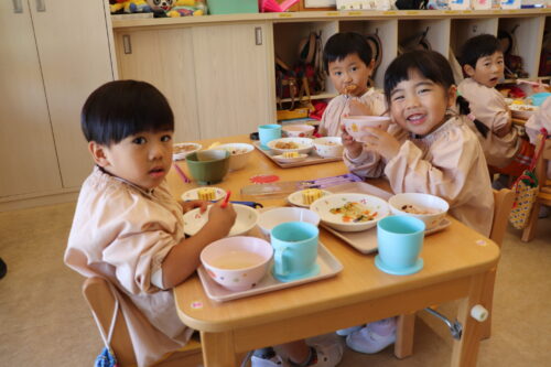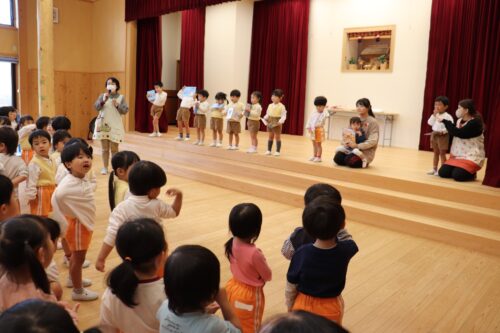 2025年10月28日 10月生まれ誕生祭♪ 今日は10月生まれのお友達の誕生祭がありました♪お誕生カードどうぞ♡お部屋ではインタビュー!果物が好きなんだって☆じゃんけんぽーん!ホールでドッジボールしたよ!誕生祭メニュー頂きます。