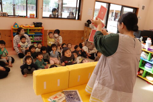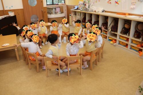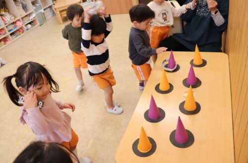 2025年10月31日 今日の子どもたち♪ 今日はハロウィーン♪ひよこさんはマジックショー!みんなの目が釘付けでした♡かぼちゃおばけがたくさんいる~!ハロウィーンシール探し!かわいいシール見つけたよ♡魔女の帽子に輪投げ☆落とさないように気を付けて!今日は英語あそびがありました。 大きく「Y!」