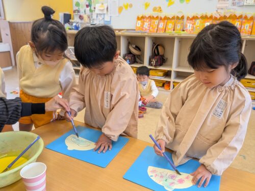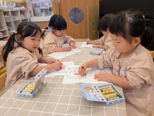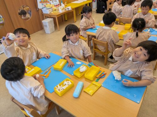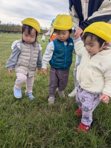 2025年11月13日 今日の子どもたち♪ 年中さんは雑草園に遊びに行きました!ひよこさんも一緒に遊びました♪うさぎさんは一生懸命色をぬりぬり~年少さんは素敵などんぐり帽子作り♪粘土で何ができたのかな~?年長さんは”おおきくなったら”の撮影をしました!