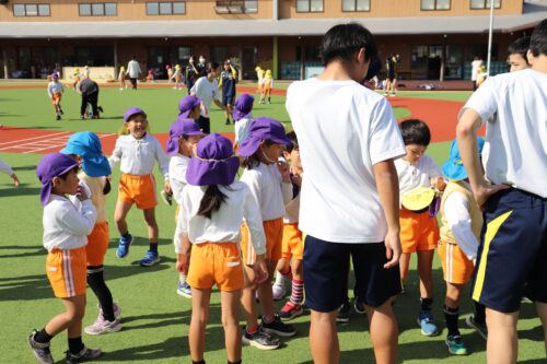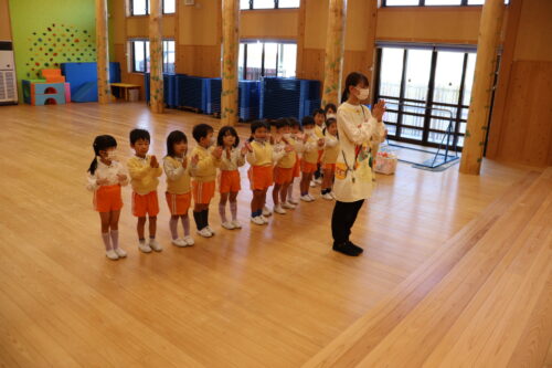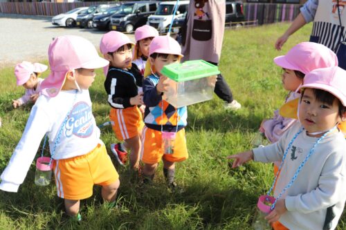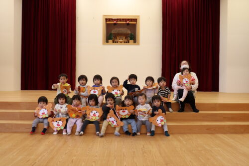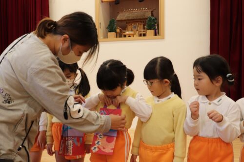 2025年11月14日 今日の子どもたち♪ 明日は七五三。これからの健やかな成長を祈ってお参りしました。自分で作った飴袋を持って記念撮影をしたよ♪くまさんの袋かわいいね!うさぎ組さんは雑草園にお出かけ。ちょうちょ捕まえたよ~!中学生のお兄さんお姉さんが来てくれました!たくさん遊んだよ♪