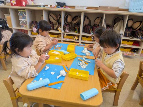 粘土遊びに集中しています。