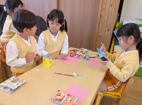 お菓子の箱で何を作るのかな?