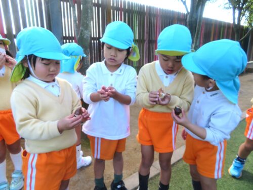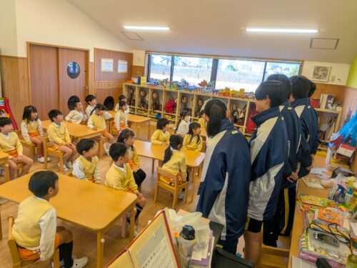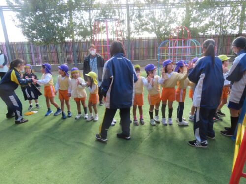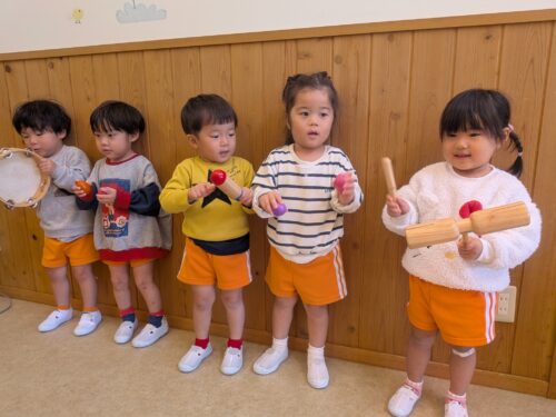 2025年11月28日 今日の子どもたち♪ フラフープ列車ゴーゴー!何色のチューリップが咲くのか楽しみだね♡雪だるまさんの目をペタッ!楽器あそびをしたよ♪色んな音がして楽しいね♪今日は久居東中学校のお兄さんお姉さんが来ました♪お部屋で名前を教えてもらったよ。一緒に外で遊びました♪バイバーイ!また来てね!