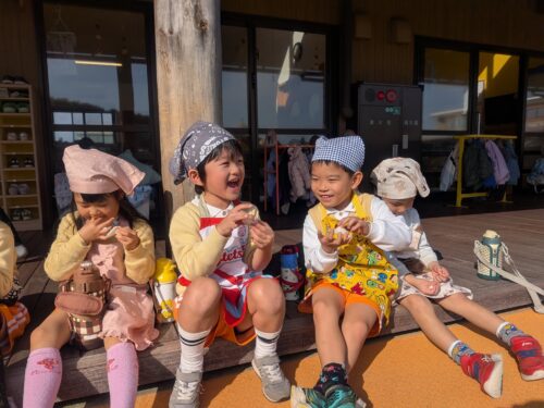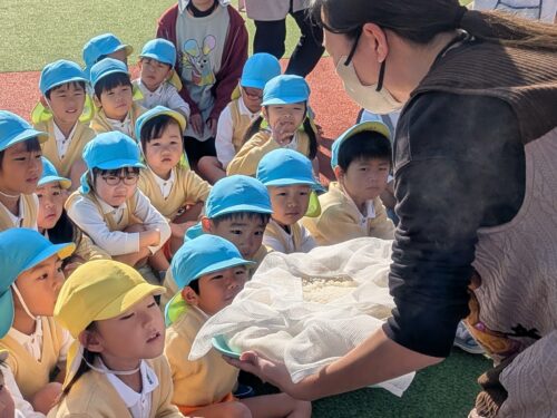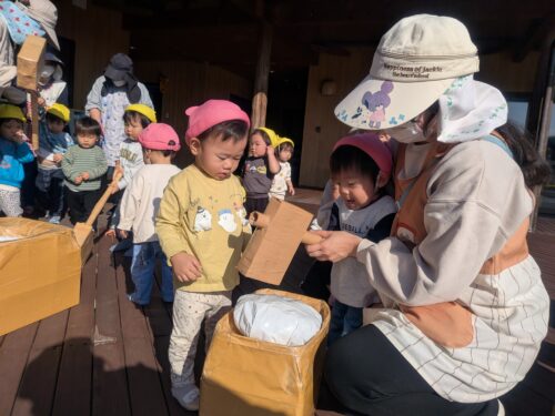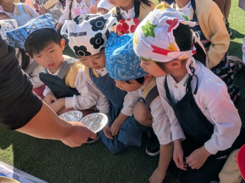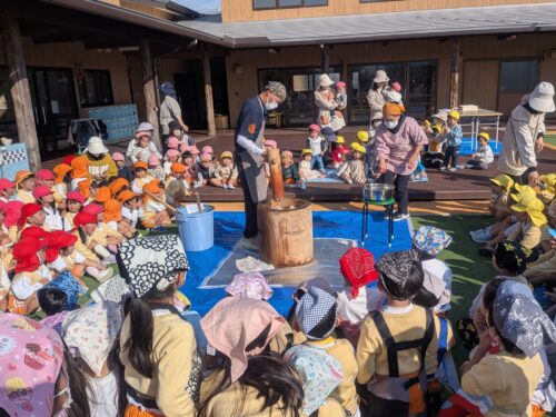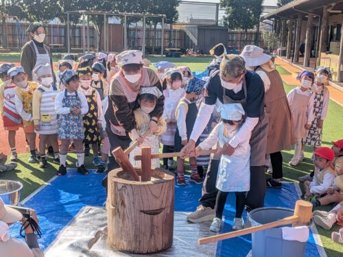 年長さん、年中さんはつきたてのおもちを頂きました♪