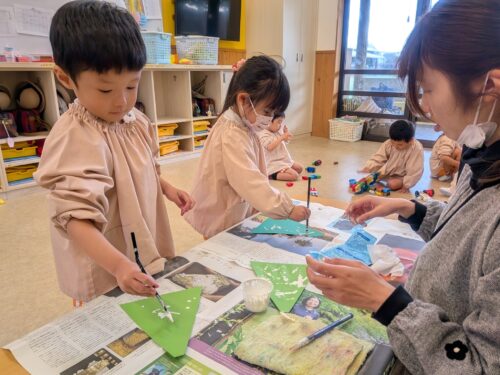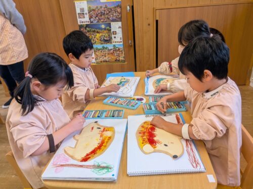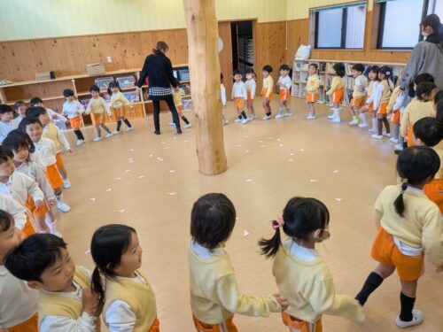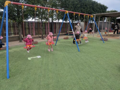 2025年12月8日 今日の子どもたち♪ 木に雪が積もってるみたいだね!ハリネズミの周りにお絵描きしたよ。自分たちで楽器の片づけもできます♪音楽会の座席のくじ引きがありました。体育あそびでマラソンをしました。よーいドン!年少さんは初めての縄跳びに挑戦☆色々な形のどんぐりがあるね。ブランコゆらゆら~♪新しい鎖に変わったよ。