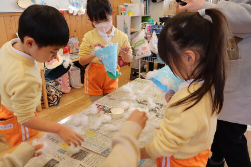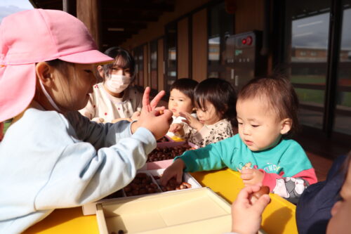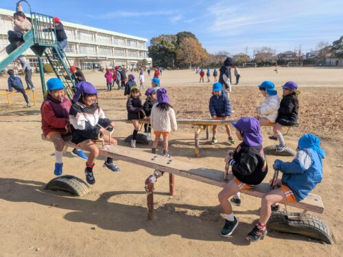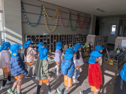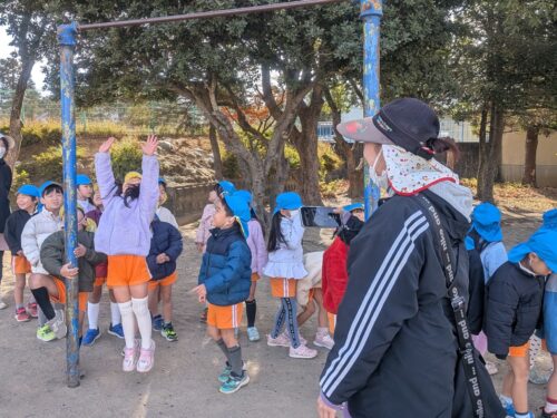 2025年12月10日 今日の子どもたち♪ 今日は年長組さんが立成小学校を訪問しました!小学校ってどんなところかな?初めて来た小学校にドキドキの年長さん☆鉄棒とどかないよ~!自由遊びになると広い運動場を元気いっぱい走ったり、園にはない遊具に夢中で遊んだりしました♪園ではクリスマスの製作♪英語あそびもありました。マラソン前の準備体操♪どんぐりたくさんあるね♡