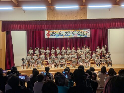 今日は年長児と年少児の音楽参観がありました。合奏・歌や手遊びを堂々と披露する子どもたち♪とても素敵な演奏と歌声でした♡