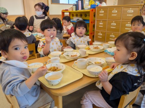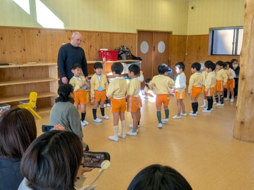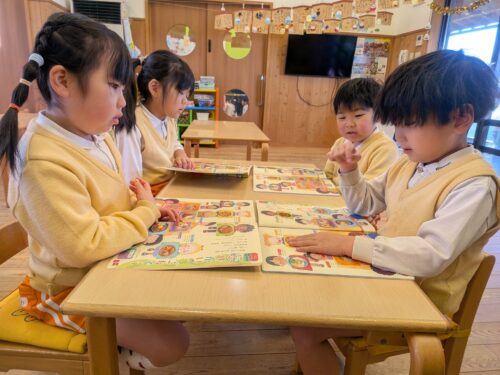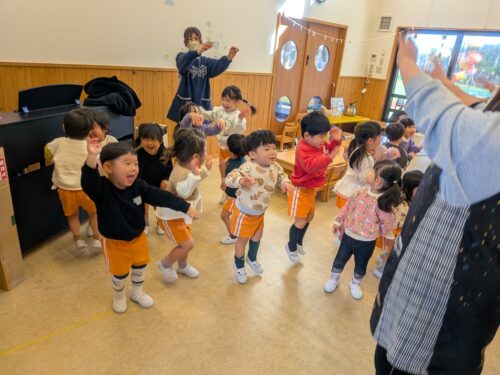 2026年1月14日 今日の子どもたち♪ 今日は英語あそび参観がありました。What's your name? 英語で答えるところを見てもらったよ!月刊誌に世界のごちそうが載ってるよ。縄跳び列車通りまーす♪レッツダンシング☆お給食いただきます♡