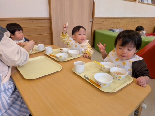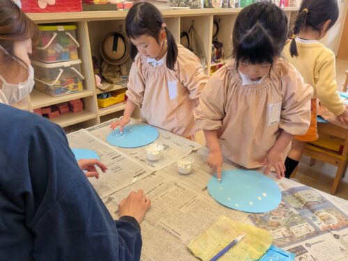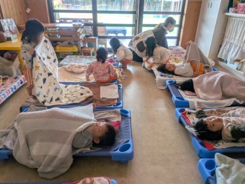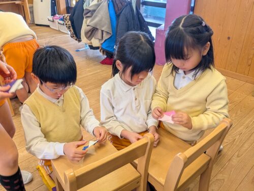 2026年1月28日 今日の子どもたち♪ 雪が降ってるみたいだね。新聞紙をぎゅーっと丸めるよ!お友だちと教え合いっこ♪英語あそびもありました♪今日はどんなゲームをするのかな?給食いただきまーす♪自分でお布団の準備できるよ!