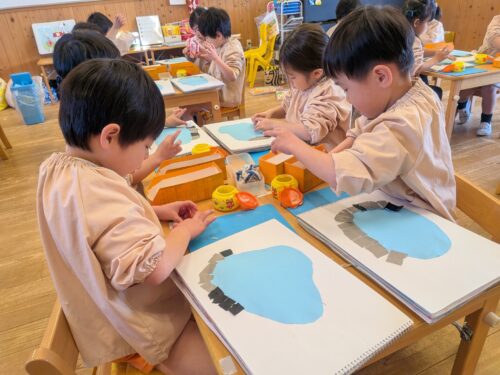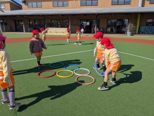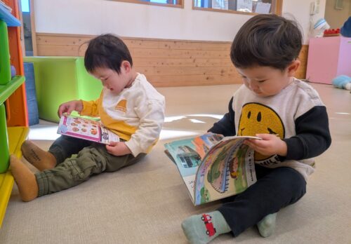 2026年2月4日 今日の子どもたち♪ 皆で数えるよ。いーち、にーい、さーん!どこに置こうかなぁ?のりを使って製作したよ。たくさん繋がってるね♪絵本に夢中です☆今日は0~3歳児さんの発表会ビデオ撮影がありました♪