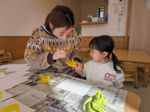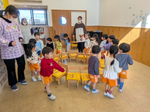 2026年2月12日 今日の子どもたち♪ ドッジボール!ボールがきたよー!山を作ったり穴を掘ったりと砂遊びに集中していました☆椅子取りゲームをしたよ♪手形をとるよ~。発表会に向けて最後の練習です。いよいよ明日は発表会だね♪