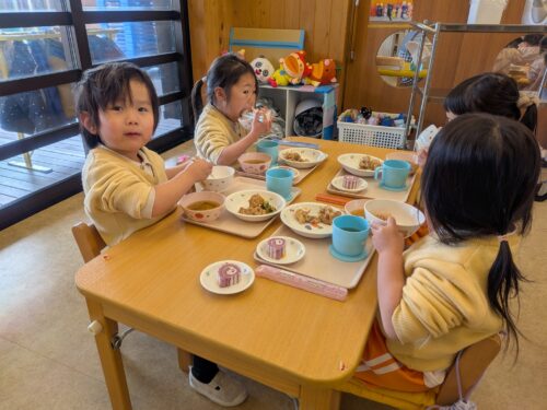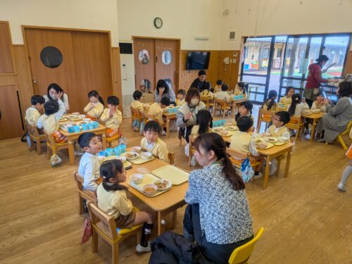 2026年2月17日 2月生まれ誕生祭♪ ホールで誕生祭が行われました♪2月生まれのお友だちは何人いるのかな?お誕生カードを貰って嬉しそう♡みんなからの「おめでとう!」に「ありがとう!」と元気に答えていました。お部屋でインタビューを受けたり、お外で一緒に遊んだりしました。お誕生日ランチ♪年中・年長さんは一緒にランチを楽しみました。