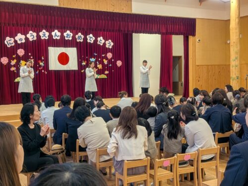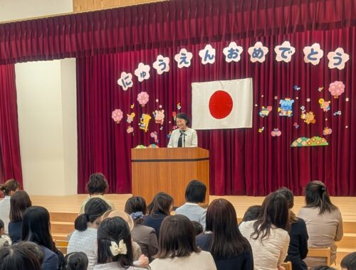 4月4日土曜日、令和8年度の入園式がこども園で挙行され、37組のご家族の方と一緒に式に臨みました。