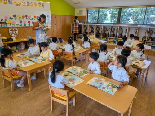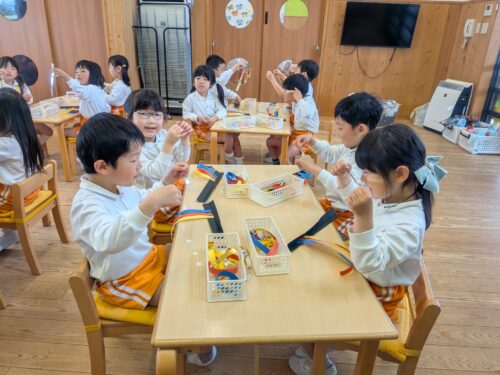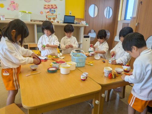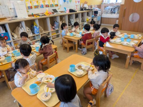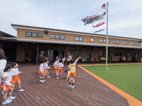 2026年4月17日 今日の子どもたち♪ こいのぼり泳いでるね。製作をしたよ。次はどの色かな?年中さんは月刊誌を見たよ♪春のお花や生き物が載ってるね。おままごと楽しいね☆お給食いただきます。今日はおさかな♪しっかりお話を聞いています♡