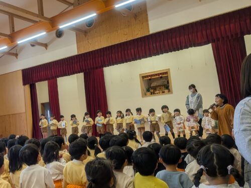 2026.2.17 2月生まれ誕生祭♪ 2026.2.16 今日の子どもたち♪ 2026.2.13 生活発表会♪(年中組・年長組) 今日は年中組、年長組の生活発表会がありました。ドキドキ!ワクワク!な気持ちで本番に臨む子どもたち♪披露した後はどこかホッとしたような笑顔も見られました。発表会を通して一回りも二回りも大きく成長したよう 2026.2.12 今日の子どもたち♪ 2026.2.10 今日の子どもたち♪ 2026.2.9 今日のこども園♪ 今日は積雪、路面凍結に伴い自宅保育のご協力をお願いしました。ご協力ありがとうございました。