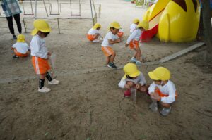 先週に続き、今日は年中児の園外保育がありました。公園ではたくさんの遊具で遊んだり、どんぐりを拾い集めたり、ピョンピョン跳ねて飛び回るバッタを捕まえていました。いっぱい体を動かし、集めたどんぐりや捕まえた虫を手に大満足の様子で園へ帰りました。