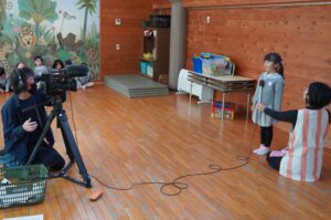 今日は、年長児が「大きくなったら何になる?」の収録を行いました。収録はひまわり教室の静かな環境で行われ、一人ずつテレビカメラの前に立ち、 「消防士になりたい」「お医者さんになりたい」「ケーキ屋さんになりたい」など、それぞれの将来の夢を元気に答えていました。本日のインタビューの様子は、令和8年2月15日~21日に放映される予定です。