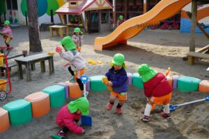 如月(2月)に入り、今日は日差しが心地よく、過ごしやすい一日でした。各クラスでは、シェラリン先生の英語あそびやICTあそび、戸外あそびなどを楽しむ様子が見られました。