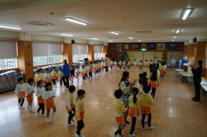 今日は、生活発表会保護者観覧席の抽選会を行いました。各学年ごとにホールへ集まり、音楽に合わせて行進し、音楽が止まると同時にくじを引き、これを3回(A席・B席・C席)行いました。園児が引いた赤・青・緑のくじは本日持ち帰っていますので、メールで添付した座席一覧表と照らし合わせてご確認ください。