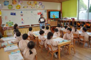 今日は、先生と一緒にロッカーやお道具箱の中身を確認したり、マーカーペンを使ってお絵かきを楽しんだりしました。