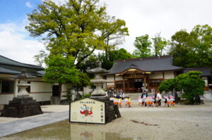 朝は小雨が降っていましたが、日中には雨も上がり、戸外でも元気に活動することができました。今日は年少児が初めて全員で久居八幡宮へ行き、一年間安全に見守っていただけるよう神様に参拝しました。