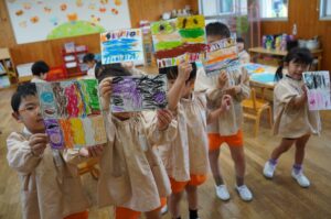 今日は雨が降り、少し肌寒い一日となりました。各クラスでは制作あそびや絵本の読み聞かせを楽しみ、給食の時間には、温かい「うどん」と、園児たちが大好きなポテト、デザートのみかんを美味しくいただきました。