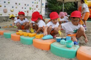 今週は暑い日が続いていましたが、今日は日陰や心地よい風もあり、戸外あそびも沢山楽しめました。年少さんは砂場や西園庭のミニハウスで、お砂場セットを使ってラーメンやチョコレートケーキなど、思い思いの食べ物を作っていました。 お料理ごっこの様子、ミニハウスや 砂場で、思い思いの料理を作って楽しんでいました 幼虫 一覧へもどる キーマカレー