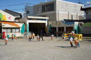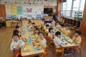 今日の給食は寒い日にぴったりのクリームシチューで、パンと一緒に美味しくいただき、体もぽかぽかと温まって、園児たちは大喜びでした。 戸外あそびの様子 園児たちは元気に活動し 給食には温かいクリームシチューを 喜んで食べていました 体育あそび 一覧へもどる 茶道