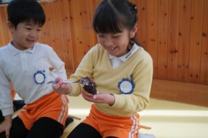 園児たちはパリパリと美味しそうな音を立て、喜んでいただきました