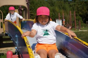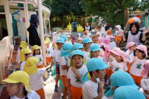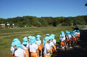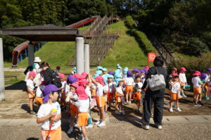 今日は、さわやかな秋晴れの下、年長児がHOWAパーク(中勢グリーンパーク)へ園外保育に出掛けました。グリーンパークでは、大人気の長~いすべり台やターザンロープなどで遊んだり、広い公園で虫捕りをしたりしました。広い公園でのびのび、たっぷり遊んで園へ帰りました。 園外保育へ行ってきます! 到着しました! 集合写真を撮影 そして公園内でのルールを確認し早速、公園で遊びます ターザンロープ 大型滑り台 大きなロープタワー ローラー滑り台 広い公園の中で、虫捕りも楽しみ 大満足の園外保育でした 茶道 一覧へもどる