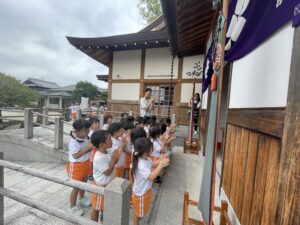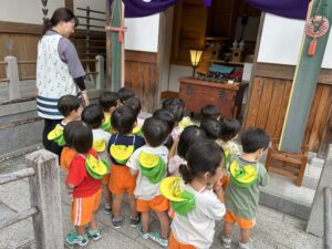今日は天満宮秋祭りがあり、野邊野天満宮へ園児たちが一人ひとり描いた絵を奉納し、その後「これからも頑張りますのでお守り下さい」と参拝しました。 野邊野天満宮へ園児が描いた絵を奉納し 「これからも頑張りますのでお守り下さい」と 参拝をしました 枕木くるくるポール 一覧へもどる 園外保育(年少児)