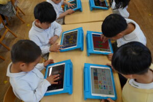 ばら組では、ICTあそびで「チョキペタ!」