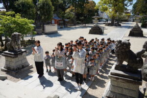 今日は令和8年度の始業式がありました。登園した園児たちは、新しいクラスへドキドキワクワクしながら向かい、新しい先生やお友だちと「一年間よろしく願します」と、挨拶を交わしました。始業式では、園長先生から進級のお祝いの言葉をいただき、みんなで「一年間頑張りましょう、おー!」と気合を入れました。 令和8年度始業式がありました 各クラスと先生の紹介もあり 式後には、久居八幡宮へ行き これからお守り下さるように、参拝をしました 修了式 一覧へもどる