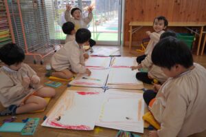 生活発表会を終えた園児たちは、また一段と成長を感じさせる表情で登園し、発表会での素晴らしい演技を褒めてもらったことや、ご褒美をもらったことを嬉しそうに話してくれました。各教室では、発表会で印象に残ったことや思い出を、お友だちと話し合いながら絵に描いていました。 3月6日の生活発表会の思い出を お友だちと話し合いながら 絵を描きました 生活発表会 一覧へもどる マラソン大会