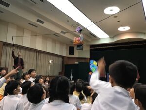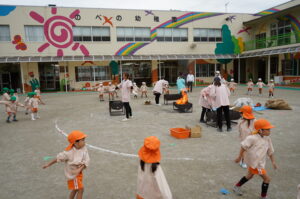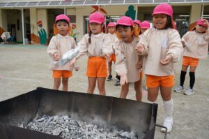 今日は、誠之地区社会福祉協議会のお招きで、年長児が劇団むすび座によるふれあい人形劇「とりかえっこ ちびぞう」と「めっきらもっきら どおん どん」を観劇しました。また、幼稚園では延期になっていた年長児と年中児の焼き芋大会も行われ、園庭に並べられた特製の焼き芋窯で焼き上げたお芋を「甘くておいしい!」と喜んで食べていました。