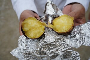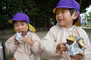 年長児・年中児の焼き芋大会もあり、特製の焼き芋窯に「紅はるか」を入れて