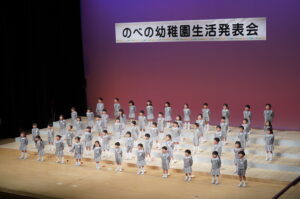 本日は、待ちに待った生活発表会がありました。園児たちは一年間の成長の成果を十分に発揮し、自信に満ちた様子で舞台を楽しみながら発表していました。どの園児も素敵な表情がキラキラと輝いており、成長を感じられる発表会となりました。無事に発表会を終えることができ、今後のさらなる成長がとても楽しみです。本日は誠にありがとうございました。