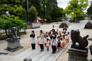 朝は小雨が降っていましたが、日中には雨も上がり、戸外でも元気に活動することができました。今日は年少児が初めて全員で久居八幡宮へ行き、一年間安全に見守っていただけるよう神様に参拝しました。 今日は、年少児全員で久居八幡宮へ行きました 雨も上がって良いお天気になり 一年間安全に見守っていただけるように参拝をしました 今日の幼稚園 一覧へもどる こいのぼり