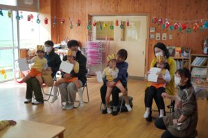 来園の保護者さんと一緒に、誕生月園児への質問コーナーや