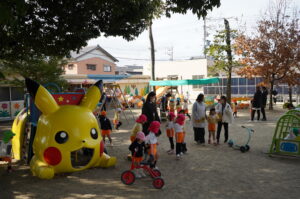 本日は、今年最後になる12月生まれの誕生祭がありました。神社では、まずお祓いを受け、禰宜さんにより子どもたちが一つ成長したことを神様へ奉告していただき、みんなで参拝をし、拝殿前で記念写真を撮りました。園では、来園の保護者さんと一緒に誕生月園児への質問コーナーや戸外あそび等を楽しみました。