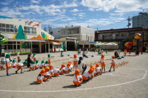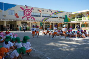 今日は年中・年長児の予行練習がありました。お友だちの応援を受けて、いつも以上に張り切って競技や演技に取り組む姿が見られました。本番ではさらにカッコいい姿を見せてくれるのが、とても楽しみです。運動会まであと少し、力を合わせて練習を重ねていきたいと思います。