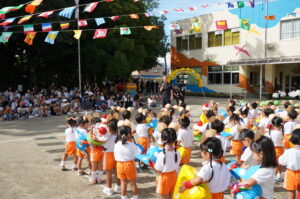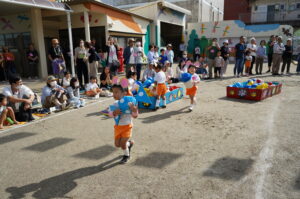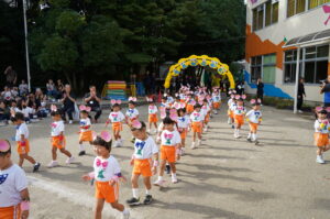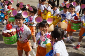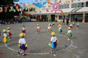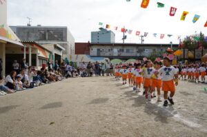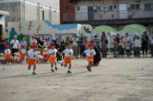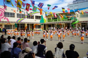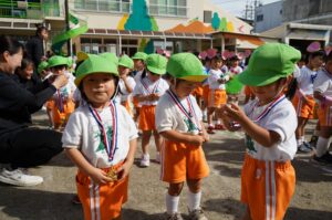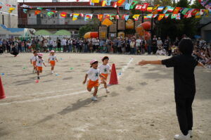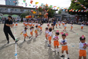 天気の影響で、2日間延期になった運動会。本日は、天気に恵まれ、園児たちの競技や演技が光る、元気いっぱいの運動会が出来ました。毎日みんなで一生懸命練習し、その成果を保護者のみなさまに披露することができ、すべての競技に大きな拍手が沸き、演技を終えた園児たちは自信に満ち溢れた表情で、一回り大きく感じられました。
